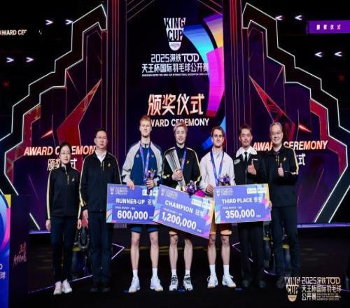 頒獎(jiǎng)典禮上,賽事發(fā)起人林丹為獲獎(jiǎng)選手頒獎(jiǎng),冠軍石宇奇斬獲120萬(wàn)元獎(jiǎng)金,亞軍安東森獲60萬(wàn)元,季軍拉尼爾與殿軍喬納坦分別收獲35萬(wàn)元、25萬(wàn)元獎(jiǎng)金。當(dāng)林丹將冠軍獎(jiǎng)杯交到石宇奇手中,全場(chǎng)燈光聚焦,定格下2025天王杯最榮耀的瞬間。