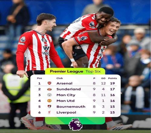 升班馬桑德蘭通過夏窗大手筆引援,成功打造出一支在英超頗具競(jìng)爭(zhēng)力的球隊(duì),進(jìn)攻提升的同時(shí)9輪僅丟7球。伯恩茅斯穩(wěn)居上游,塞梅尼奧和克魯皮等人發(fā)揮不俗。