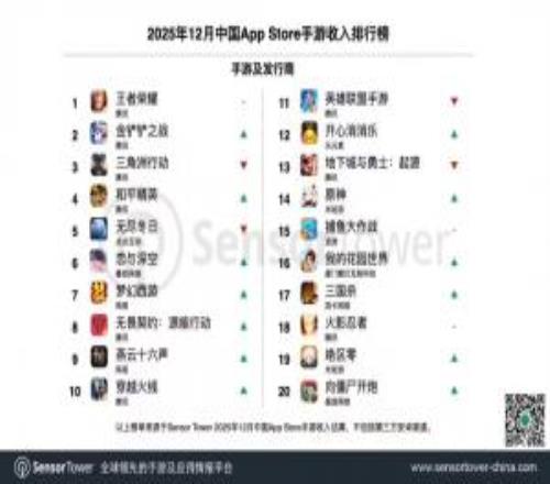 騰訊衛(wèi)冕2025年12月全球手游發(fā)行商收入冠軍,旗下《王者榮耀》、《金鏟鏟之戰(zhàn)》、《三角洲行動》與《和平精英》包攬本期中國App Store手游收入榜TOP4。數(shù)據(jù)顯示,《王者榮耀》2025年全年收入(不含中國地區(qū)第三方安卓渠道)超過20億美元。